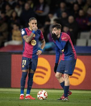 体育资讯4月28日讯 国王杯决赛,巴萨3-2战胜皇马。赛后,据《每日体育报》报道,巴萨对西班牙足协的安排感到不满,在国王杯的庆祝活动中,球员只被允许携带直系亲属进场陪同,与此同时,现场却出现大量与比赛无关的油管网红和其他受邀请者。